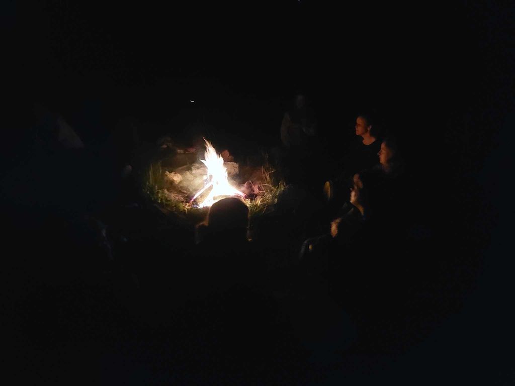 Sobotna gostja Amadea je za nas pripravila ritual kreiranja prostora in časa za manifestacijo. Svoje noge smo zakopali v pepel in nato v sol. Res  je bilo očiščujoče. Dan se je zaključil s smehom, igranjem na instrumente, petjem okrog ognjišča sredi travnika.