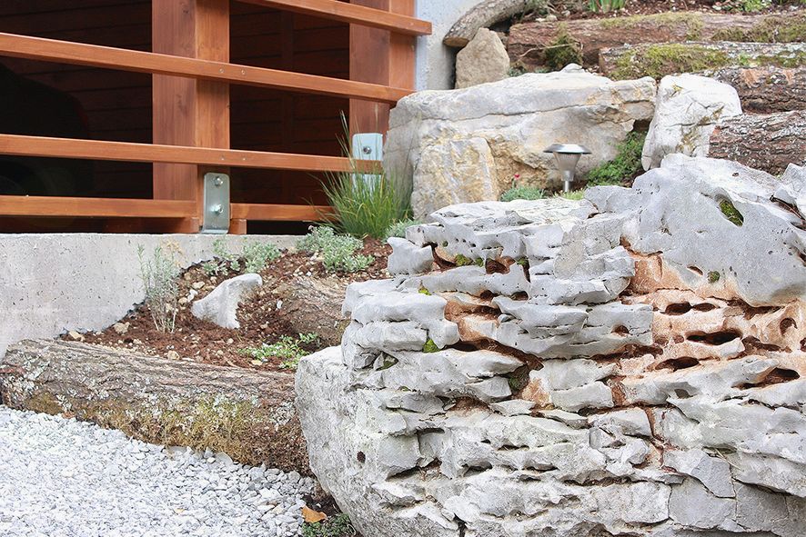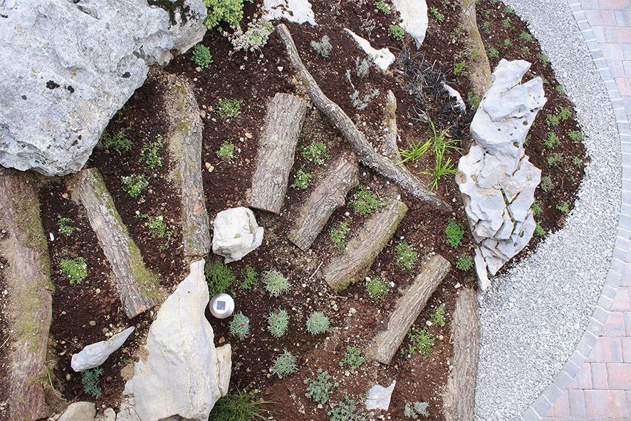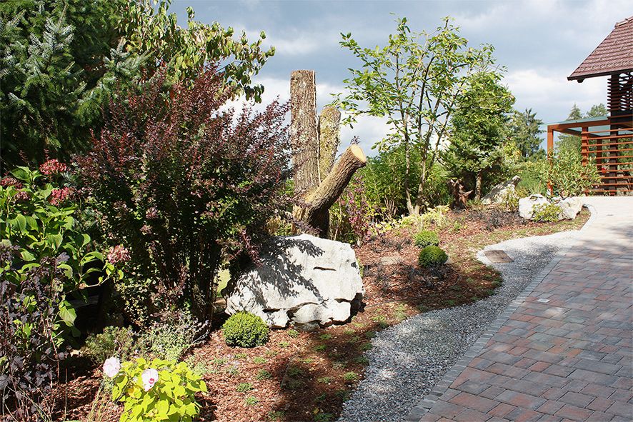 Ker v hišici živijo ljudje z občutkom za lepo oblikovan vrt, je bila zasaditev vrta v vseletnih barvah pričakovana. Rastline so povezovalni člen med dodanimi objekti, oblikovanje pa je izhajalo iz obstoječih dreves in dodajanja novih, izbora rastlin za vse letne čase, uporabo skalnato-lesenih vrtnih elementov ter ustvarjanja habitata za ptice, čebele in ostale žuželke. Prostor aktivnega oddiha je bil na začetku bolj za »vikend«, z ureditvijo pa postaja stalni dom.