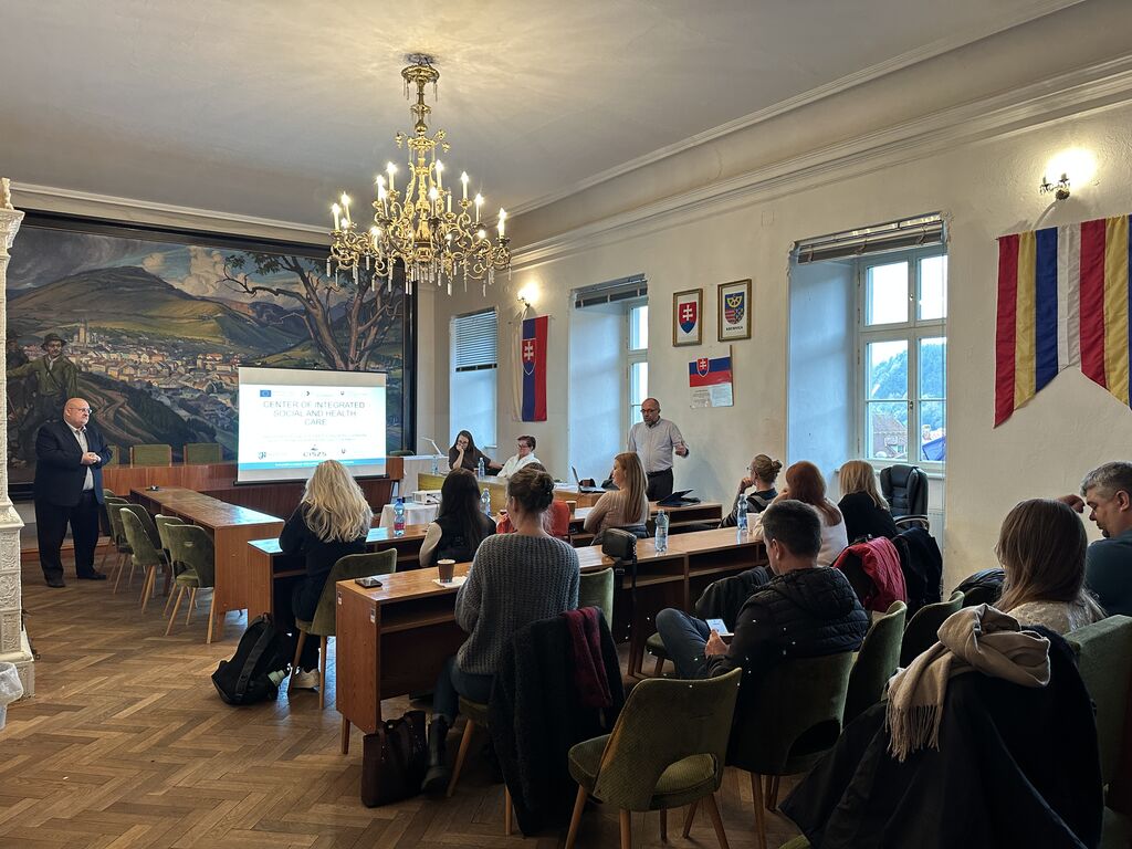 Obiskali smo občino Kremnica, kjer je partnerje pozdravil župan kraja Trnava Hora in župan mesta Kremnice. Seznanili so nas s svojo mikroregijo, v kateri živi približno 10.000 prebivalcev. Izpostavili so ključne družbene izzive - staranje prebivalstva, migracija mladih v mesta in vse večja potreba po pomoči starejšim, invalidom ter drugim ranljivim skupinam. Kremnica je ena prvih regij, ki te izzive aktivno rešuje z inovativnimi pristopi. Ključno vlogo ima Center za integrirano socialno in zdravstveno oskrbo (CISZS), pobuda, katere cilj je izboljšanje dolgotrajne oskrbe starejših v regiji. Center združuje socialne in zdravstvene storitve v enotno, koordinirano strukturo ter deluje kot orodje večnivojskega partnerstva. Njegovo poslanstvo je zagotavljanje dostopne, kakovostne in celostne oskrbe, ki starejšim in ranljivim skupinam omogoča dolgoročnejšo samostojnost in možnost bivanja na domu. Storitve vključujejo spremljanje njihovega zdravja, priprave zdravil, dnevne obiske, podporo pri socialnih potrebah in temeljnih življenjskih aktivnostih ter pomoč pri dostopanju do institucij, kot so bolnišnice in uradi.