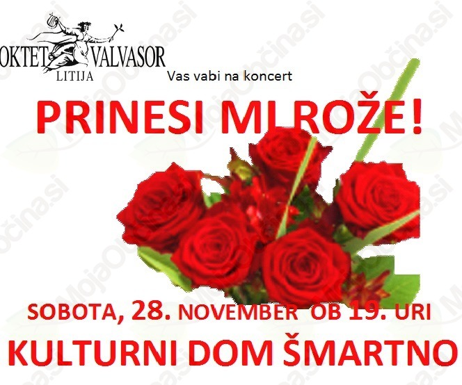 Oktet Valvasor vas vabi na koncert Prinesi mi rože, ki bo v soboto 28. novembra ob 19.00 uri v kulturnem domu Šmartno.