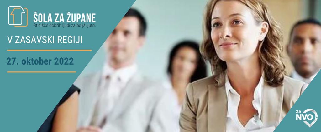 Vabimo predstavnike NVO (društev, zavodov, ustanov) iz različnih področji, da se udeležite  osrednjega dogodka akcije Šola za župane, ki bo potekal v četrtek, 27. oktobra 2022, v dvorani Doma Svobode, Trg Franca Fakina 4, Trbovlje, od 17.00 do 20.00
