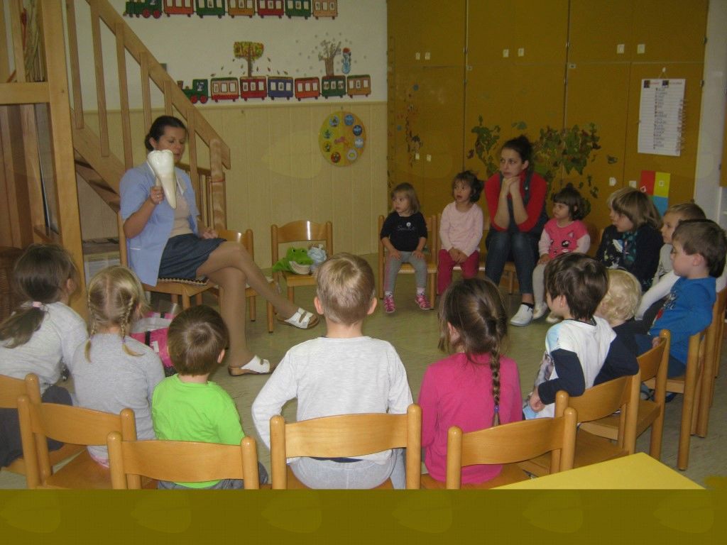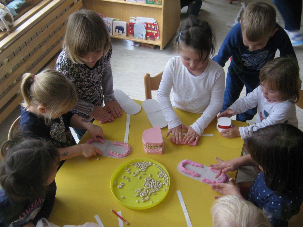 Vsako leto znova v vrtcu in v skupini Pikapolonic vpeljejo to temo v svoje delo, vedno malo drugače, z drugimi vsebinami, a poskušajo vsebine otrokom približati tako, da se nekaj naučijo, da uživajo, ustvarjajo … Zobki, umivanje, skrb zanje, zdrava prehrana, obisk medicinske sestre z zanimivo predstavitvijo, ustvarjanje, prepevanje, različni plesi, otrokom še posebej zanimiv ples »kariesov« in nenazadnje igra vlog zobozdravnik in ob tem ustvarjanje plesne točke za nastop na prireditvi »Tržnica«. Ob enem so zbirali sredstva za šolski sklad s prodajo domačih proizvodov na "Tržnici, ki bogatijo njihove dejavnosti. Pri točki z naslovom "Zobki" so se predstavili vsi oddelki vrtca. Preko plesa in petja so prikazali pot od prekomernega sladkanja s sladkarijami, do nastanka kariesa, obiska zobozdravnika (tu se je predstavila njihova skupina), do zdravih zobkov, za katere lepo skrbijo.