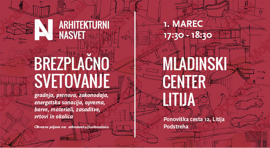Z izvajanjem tovrstnih svetovanj želijo poudariti smotrnost razumno oblikovanega prostora, ki odgovarja posameznikovim bivalnim navadam, in nuditi osnovne usmeritve pri vprašanjih v zvezi z gradnjo, prenovo, sanacijo, adaptacijo ter urejanjem okolice. Pridružite se jim na svetovalnici v Litiji, v torek, 1. marca 2016 od 17:30 do 18:30, na podstrehi Mladinskega centra Litija. Več informacij ter obvezne prijave najdete na njihovi spletni strani www.arhnasvet.si/svetovalnice/.