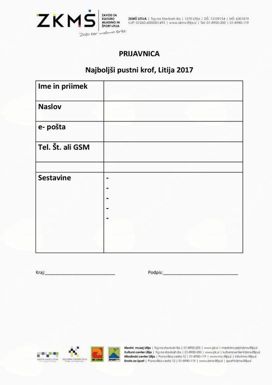 Za prijavo dostavite podatke s prijavnice na turizem@zkms-litija.si.