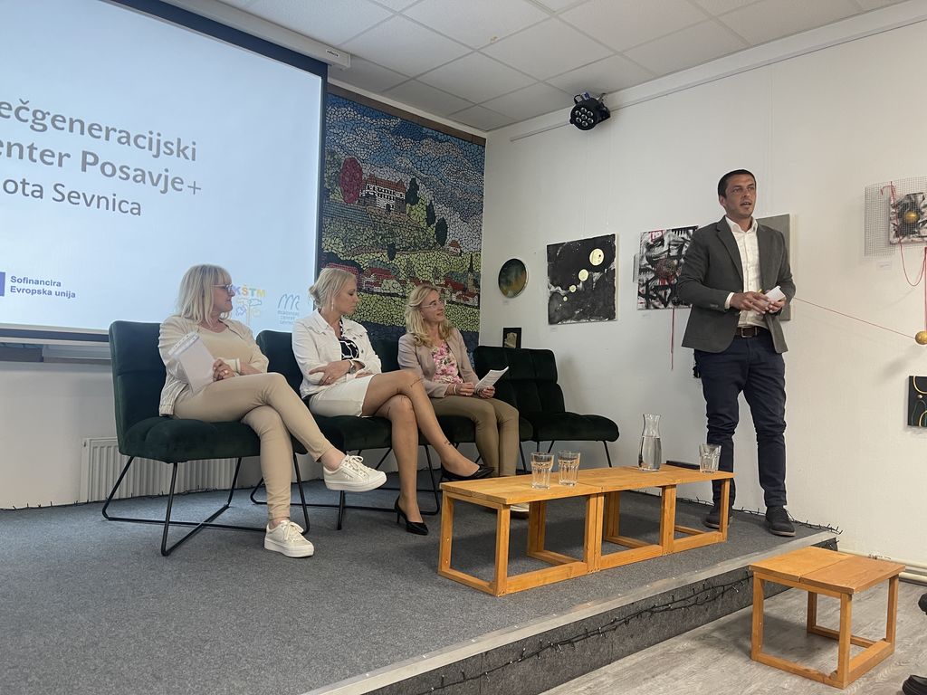 V popoldanskem delu je Občina Sevnica organizirala študijski obisk, na katerem smo partnerji spoznali več navdihujočih lokalnih dobrih praks. Najprej smo obiskali Mladinski center Sevnica, kjer sta Mojca Pernovšek, direktorica Javnega zavoda za kulturo, šport, turizem in mladinske dejavnosti Sevnica, in Nataša Rupnik predstavili delovanje Medgeneracijskega centra Posavje+, ki s svojimi programi podpira duševno in telesno zdravje starejših.