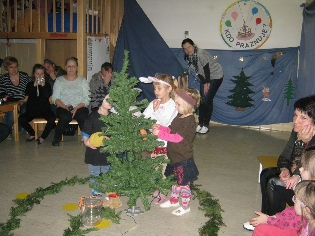 K ustvarjanju čarobnosti so na poseben način pripomogli tudi starši in zunanji sodelavci, ki so s pestrimi dejavnostmi polepšali predpraznične dni. Z Metkino mamico so spoznavali zelišča in pripravili čajanko. Na delavnici s starši so ustvarjali hodulje, s katerimi je dedek Mraz obdaril otroke. Gledališče Mužan jim je odigralo krasno lutkovno predstavo. Z jelenčkom Rudolfom, ki je bil rdeča nit meseca decembra, so vsak dan odpirali pisma dedka Mraza, prepevali njegovo pesem, igrali igrico, ustvarjali, pekli piškote, izdelovali voščilnice in okrasili novoletno smreko. Leto so zaključili s starši na novoletni čajanki. Za uvod so otroci odigrali igrico o jelenčku Rudolfu, v kateri so sodelovali tudi starši. Jelenčku Rudolfu so straši pomagali okrasiti tudi smreko. Sledilo je druženje ob čaju in piškotih.