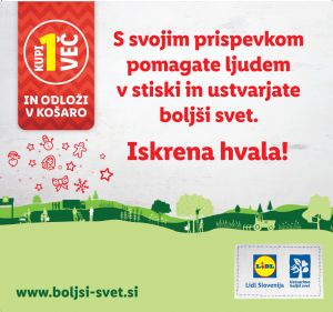 V Lidlu Slovenija se trudijo ustvarjati boljši svet za vse, zato že osmo leto zapored zbirajo hrano za ljudi v stiski. Z nagovorom »Kupi 1 več in odloži v zbiralno košaro« vabijo k nakupu izdelkov z daljšim rokom trajanja in higienskih izdelkov za lokalne organizacije, ki po vsej Sloveniji pomagajo posameznikom in družinam v stiski.
