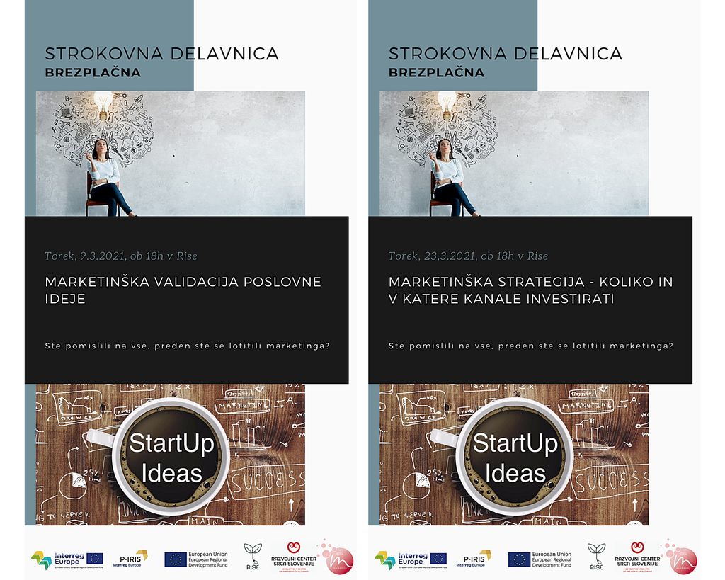 Skladno s to mislijo sta bili zasnovani tudi obe delavnici. Prva delavnica z naslovom »Prva marketinška validacija poslovne ideje« je potekala 9.3.2021, udeležilo pa se jo je 11 oseb. Predavateljica je udeležence popeljala skozi osnovne korake na poti od poslovne ideje do prvega marketinškega plana, pri čemer jih je opozorila na kaj vse morajo pomisliti, preden se lotijo marketinga. Za udeležence je pripravila vajo s pomočjo katere so poslovni plan Kanvas pretvorili v učinkovita marketinška izhodišča. Zakaj je to vitalnega pomena za posel in razvoj ideje? Na ta način podjetnik dobi boljše razumevanje svojega trga in svojega kupca. Prodaja postane bolj predvidljiva in vse vajeti za rast posla so v rokah podjetnika.