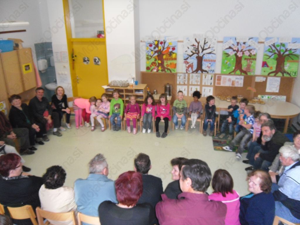 V vrtcu je v popoldanskem času potekalo prijetno druženje otrok s starimi in prastarimi starši.