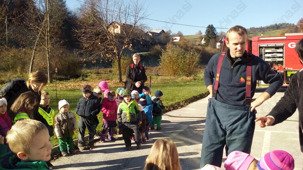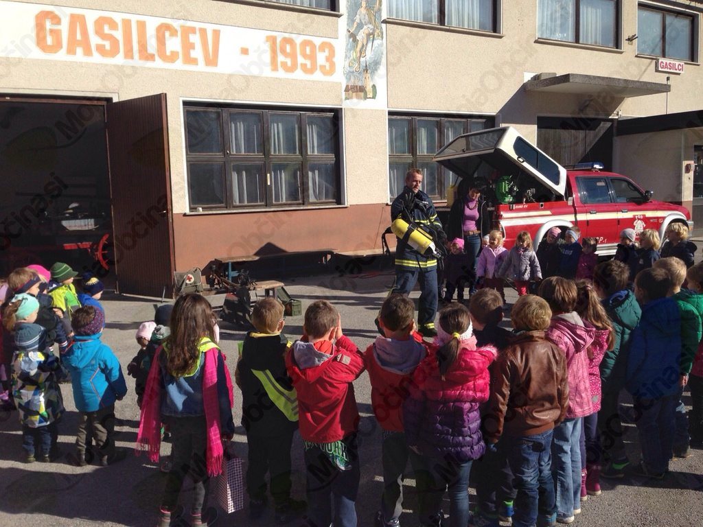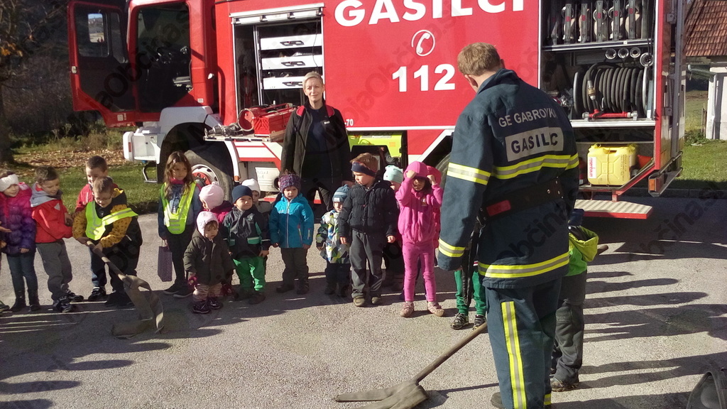 V sodelovanju s Prostovoljnim gasilskim društvom Gabrovka so v vrtcu izvedli evakuacijo. Po uspešno izvedeni vaji so otroci odšli na ogled gasilnega doma. Gasilec David jim je razkazal gasilni dom, opremo, gasilska vozila ter pripomočke, ki jih gasilci uporabljajo za gašenje različnih požarov in reševanje v nesrečah. Za konec so se lahko vsi otroci preizkusili v ciljanju tarče z vodnim curkom iz gasilske cevi, brez česar obisk pri gasilcih ne sme manjkati.
