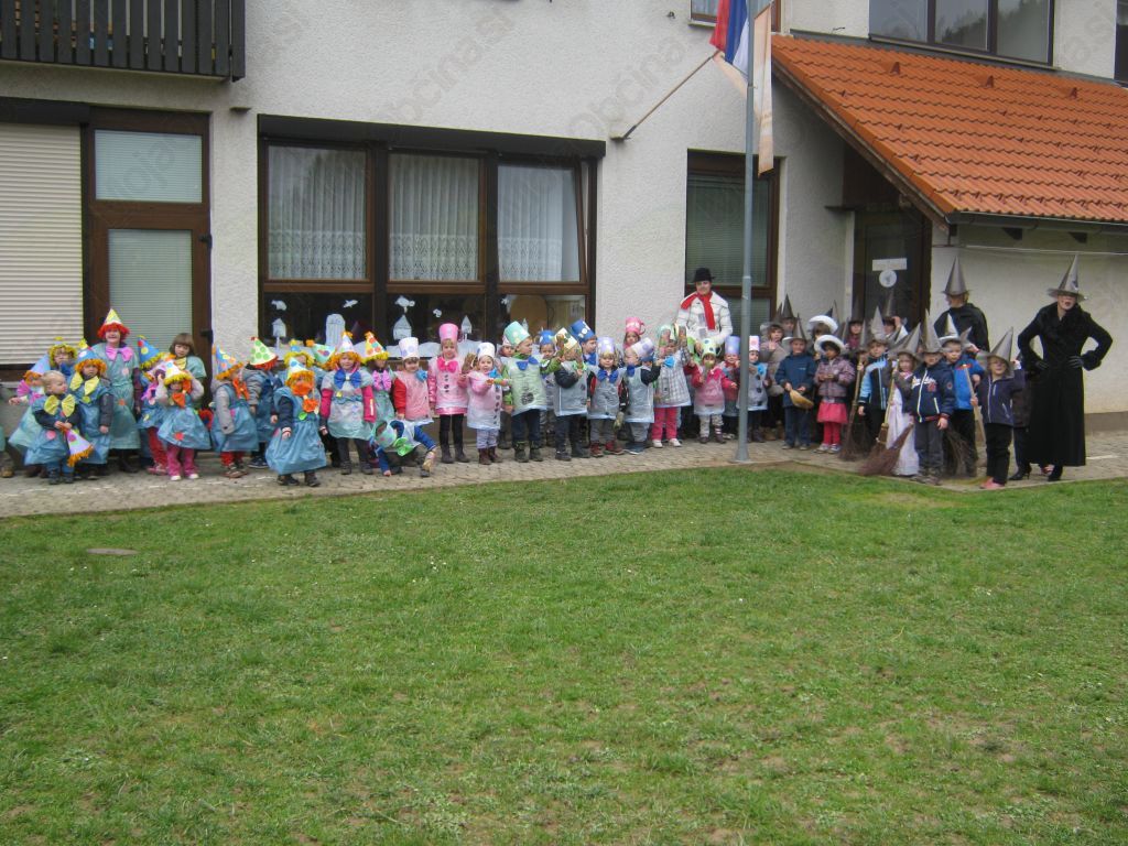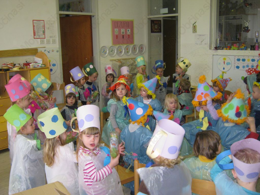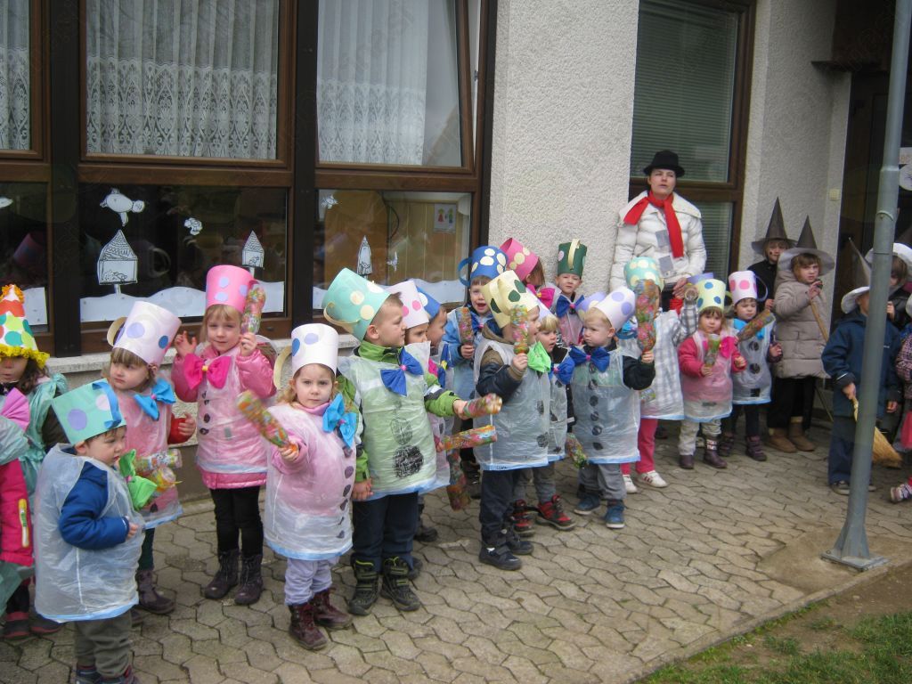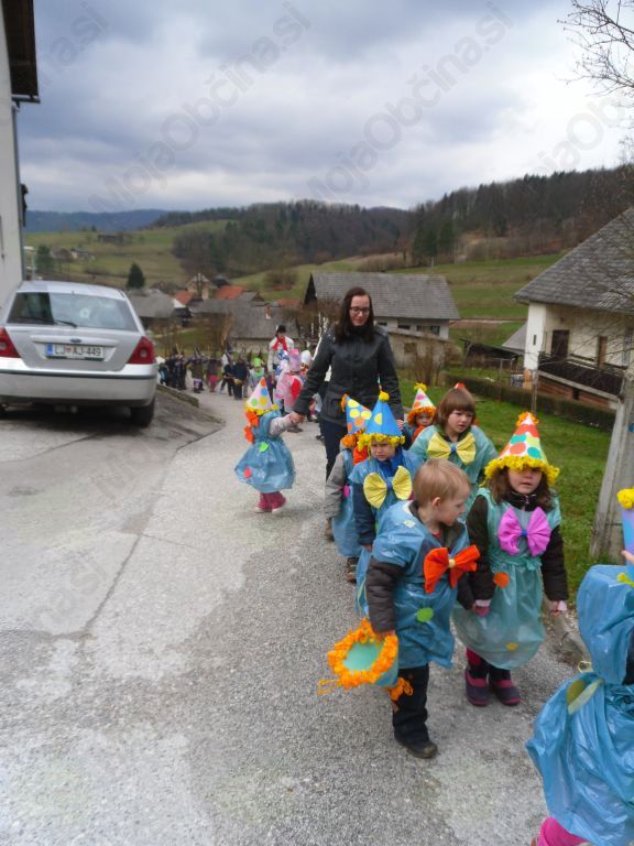 Maske so otroci v vrtcu pripravili sami. Starši so svojim malim »čarovnicam« pomagali z izdelavo doma narejenih metel, "snežaki" pa so izdelali glasne ropotulje za povorko.