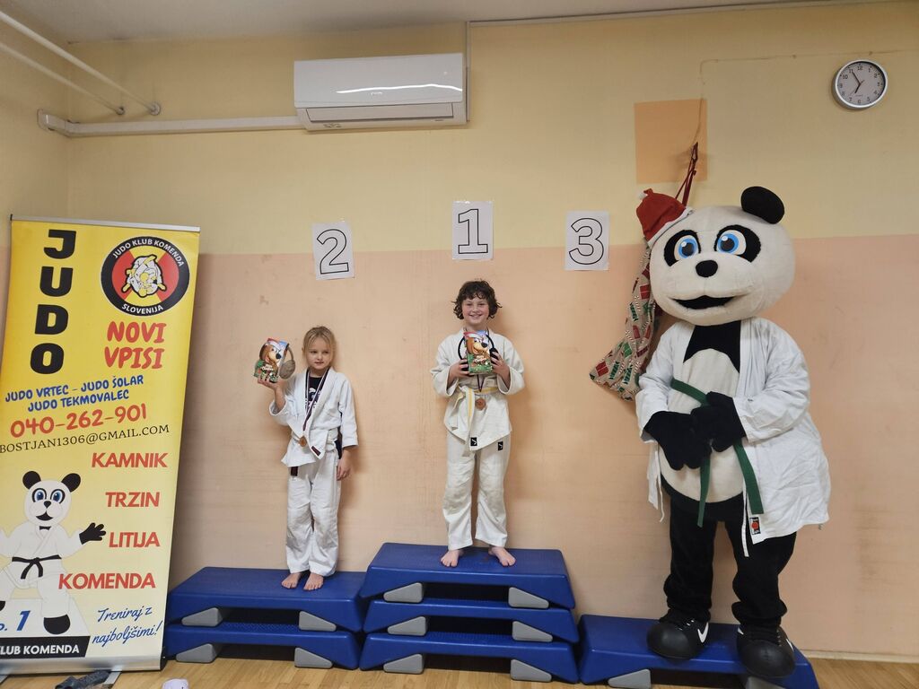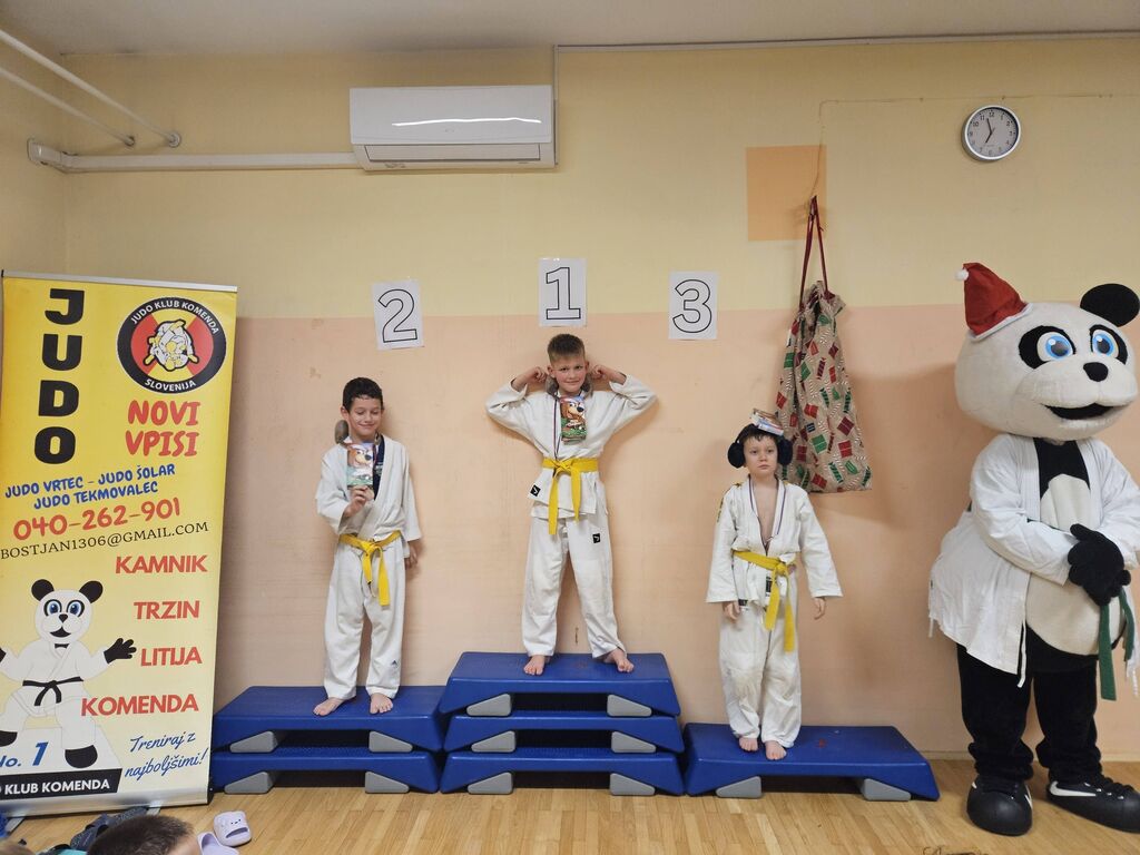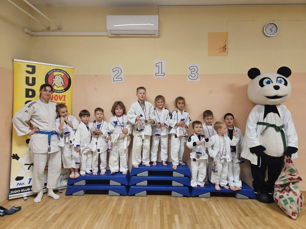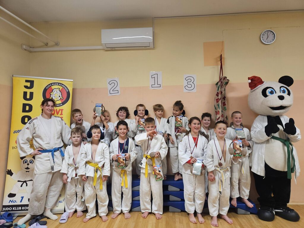 Za lep zaključek dneva so vsi tekmovalci prejeli kolajne in novoletna darila, ki so bila prijetna nagrada za njihov trud in vztrajnost skozi leto. Posebno navdušenje je med otroki požel tudi obisk klubske maskote Judo Pande, ki je s svojo prisotnostjo poskrbela za še več nasmehov, objemov in nepozabnih spominov.