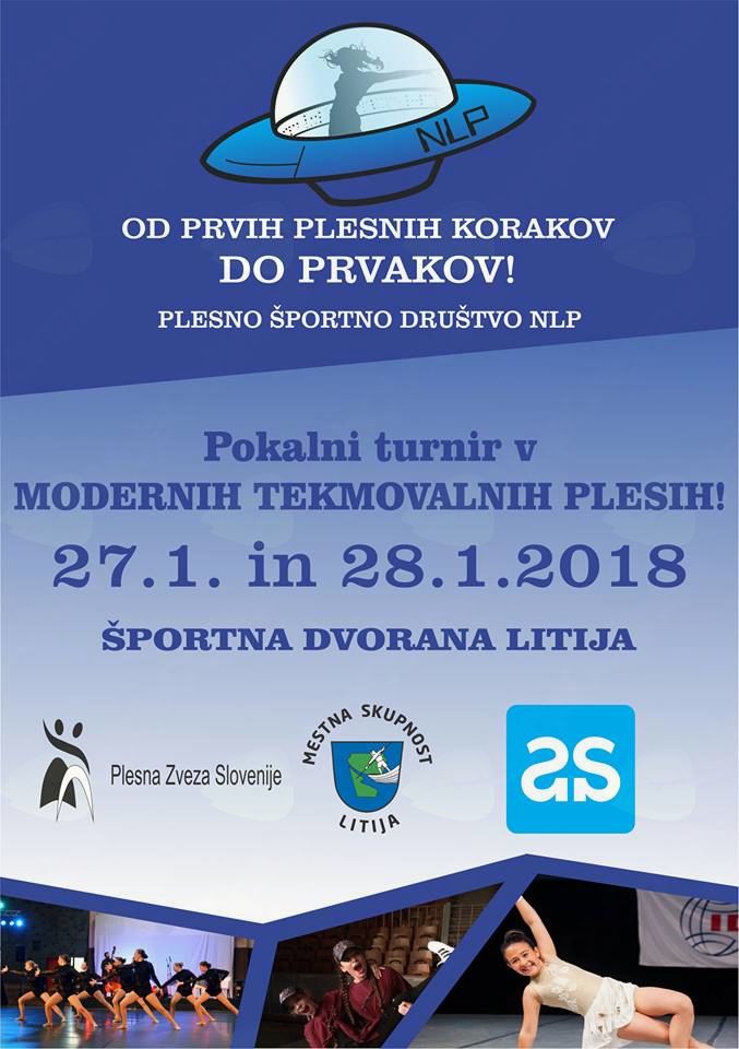 27.1. in 28.1.2018 Plesno športno društvo NLP organizira Pokalni turnir v modernih tekmovalnih plesih. Zaplesali bodo plesalci iz cele Slovenije v 9. plesnih kategorijah. Tekmovanje bo potekalo v Športni dvorani Litija.