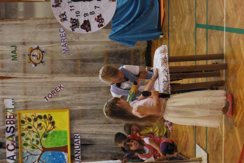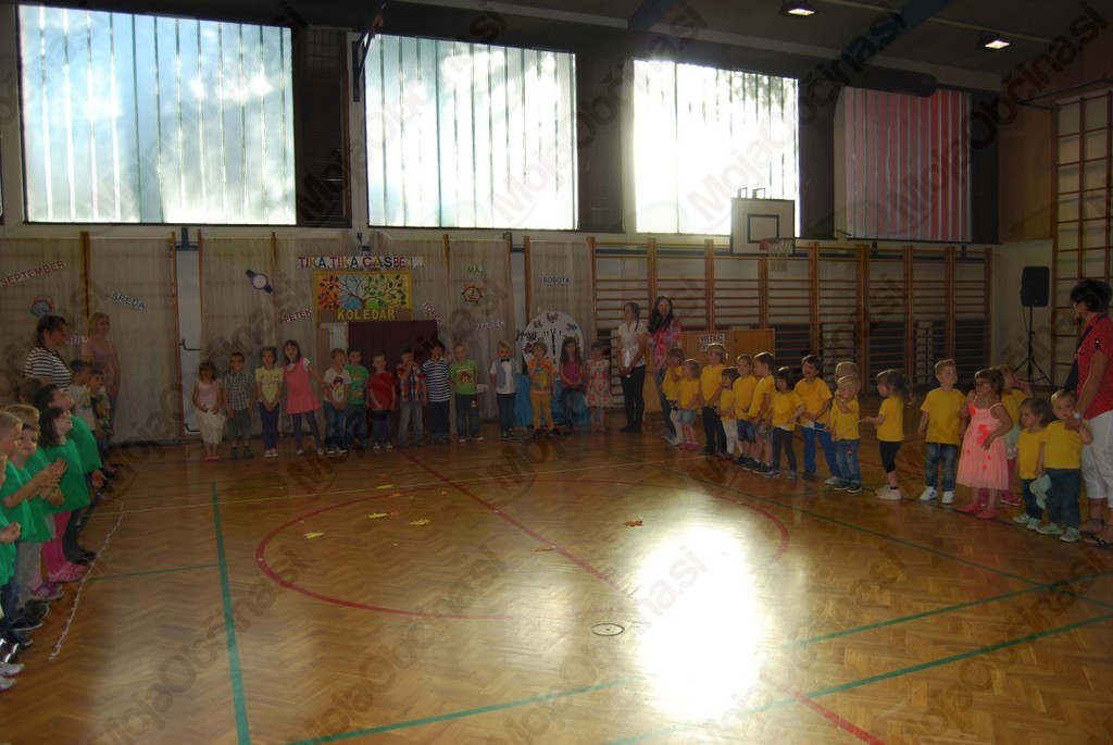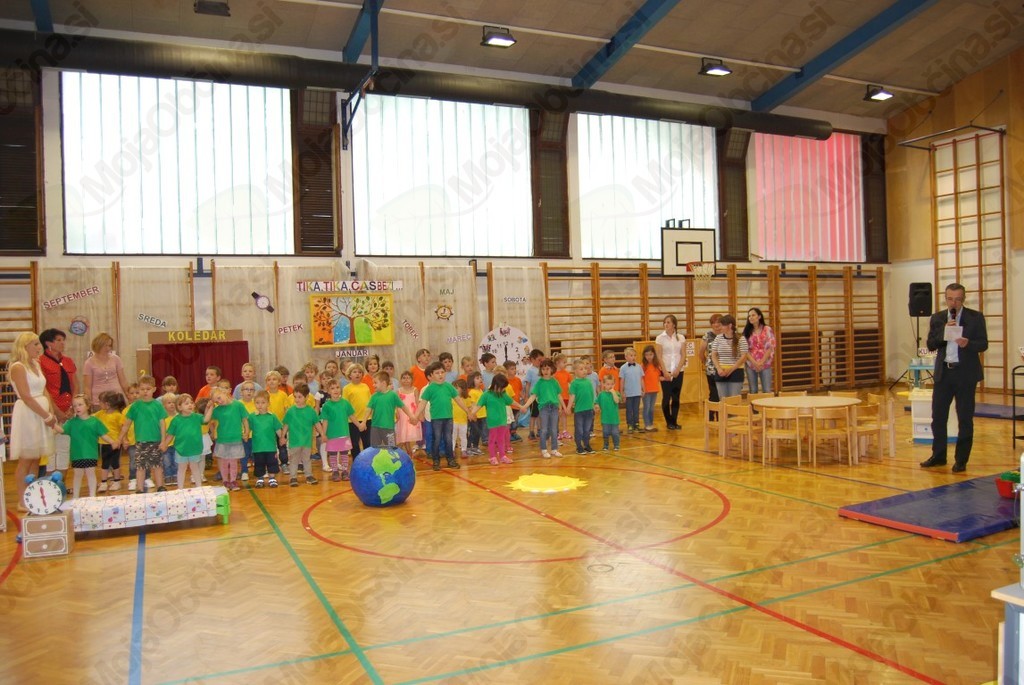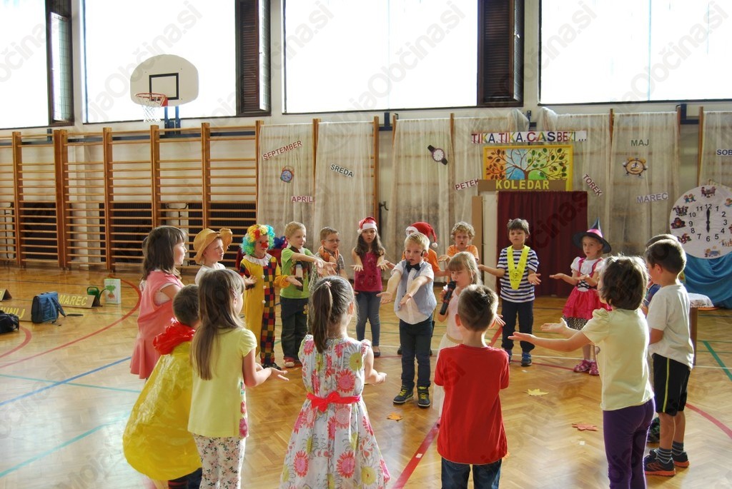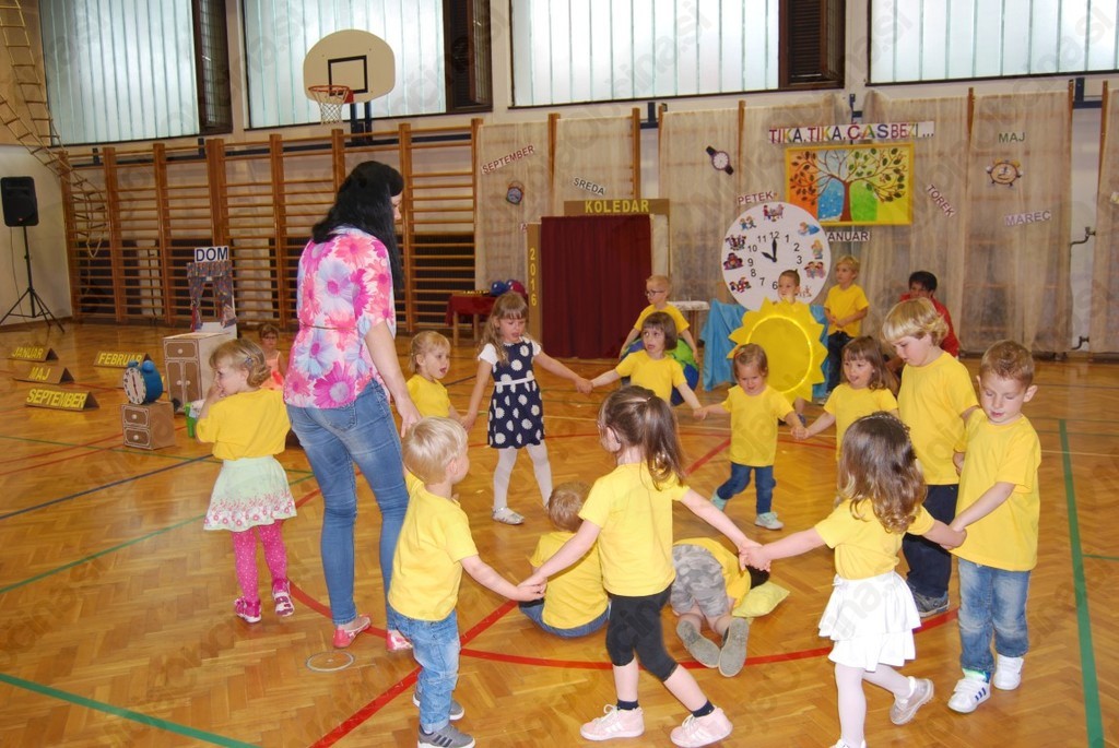 Res beži, še ne dolgo nazaj so nekateri prvič vstopili v vrtec, skupaj premagovali prve korake uvajanja. Pa je že tu konec leta in njihov zaključek. Koliko novega znanja so vsrkale njihove glavice. To so lahko videli tudi vsi obiskovalci na njihovi zaključni prireditvi, »Tika, taka, čas beži…«. Rdeča nit prireditve je bila povezana z njihovim letošnjim prednostnim področjem »Porajajoča se pismenost«. Skozi uro in pol dol program so prikazali, kaj vedo o času, kako se v njem orientirajo in kako uresničujejo cilje iz področja zgodnje porajajoče se pismenosti na področju naravoslovja. Vsaka od skupin je prikazala eno časovno obdobje: dan in ure, dnevi v tednu, meseci v letu in skupna točka letni časi. Od najstarejših vrtičkarjev so se tudi slovesno poslovili.