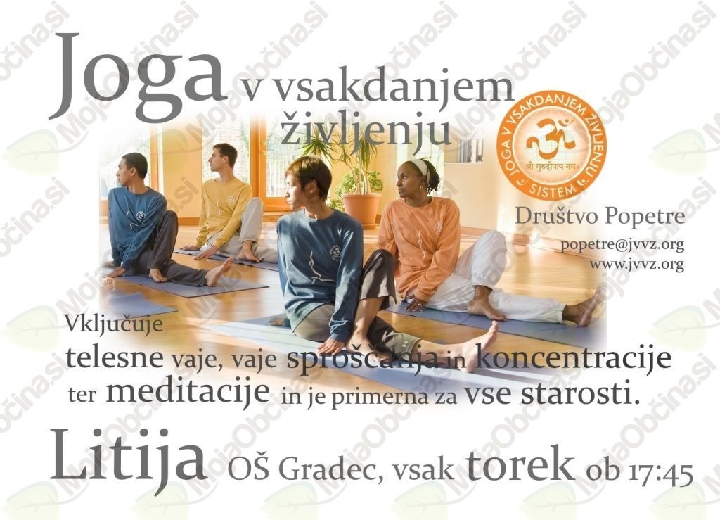 Društvo Joga v vsakdanjem življenju Popetre vas prijazno vabi, da se udeležite vadbe in naredite nekaj dobrega zase.