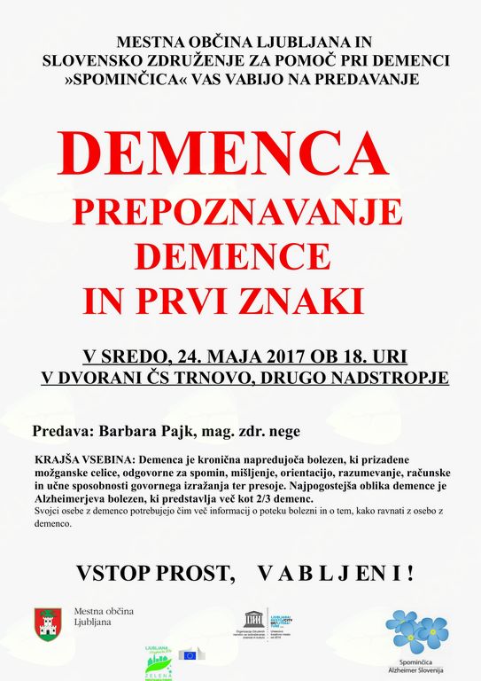 Organizator: SPOMINČICA-ALZHEIMER SLOVENIJA-SLOVENSKO ZDRUŽENJE ZA POMOČ PRI DEMENCI