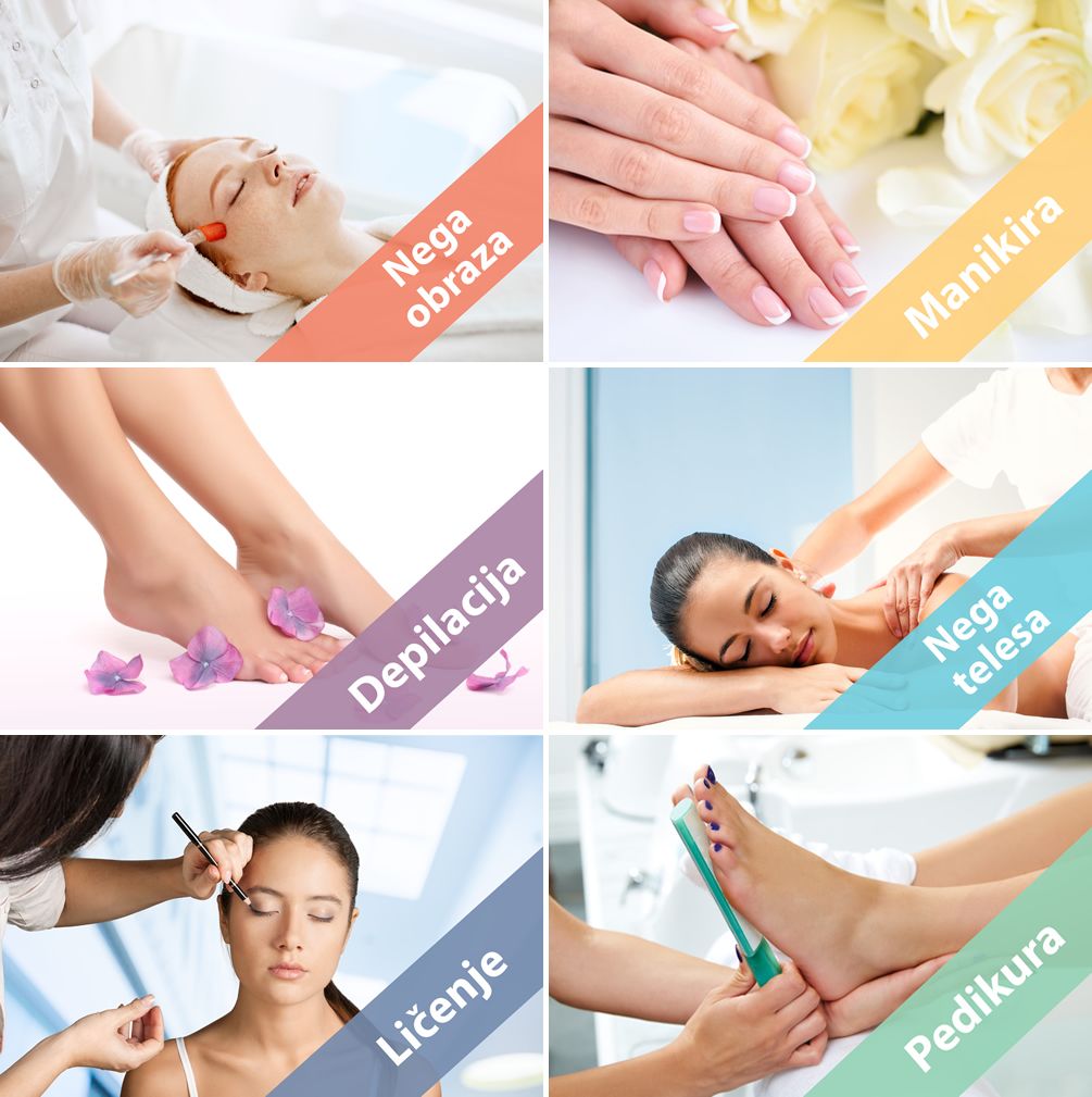 Strankam so na voljo brezplačni tretmaji nege obraza, nege telesa, depilacije, manikire, pedikure in ličenja.