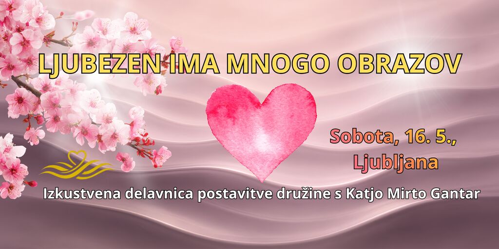 V soboto, 16. 5., med 10. in predvidoma 14. uro* vabljeni na eksperimentalno izkustveno delavnico postavitve družine z naslovom Ljubezen ima mnogo obrazov. Mesec maj je mesec ljubezni, zato tema ljubezni kar kliče, da jo pogledamo z različnih zornih kotov ter globin. Ljubezen lahko najdemo povsod, tudi tam, kjer jo najmanj pričakujemo. Pa ne zgolj tiste romantične, temveč tudi takšno, ki zaradi različnih povezanosti družinskih članov lahko vodi v nenavadna vedenja, bolezni ter usodne zaplete. Na delavnici se bomo posvetili tudi pomembni temi ljubezni do sebe ter vprašanju, kako ustvariti ravnovesje med ljubeznijo do sebe ter ljubeznijo do drugih.
