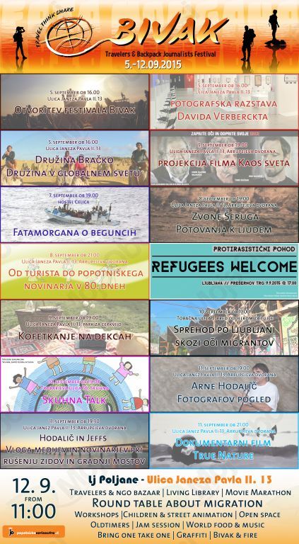 Travelers and Backpack Journalists Festival Bivak wants to challenge its visitors and empower their sense for critical thinking about the current situation in the world. Our goal is to open the floor directly to migrants living in Slovenia.