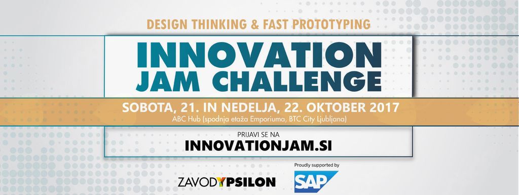 “Innovation Jam Challenge” se bo odvijal 21. in 22. oktobra 2017 v ABC Hubu (spodnja etaža Emporiuma, BTC City Ljubljana). Prijave sprejemamo do vključno nedelje, 15. oktobra 2017 na InnovationJam.si.