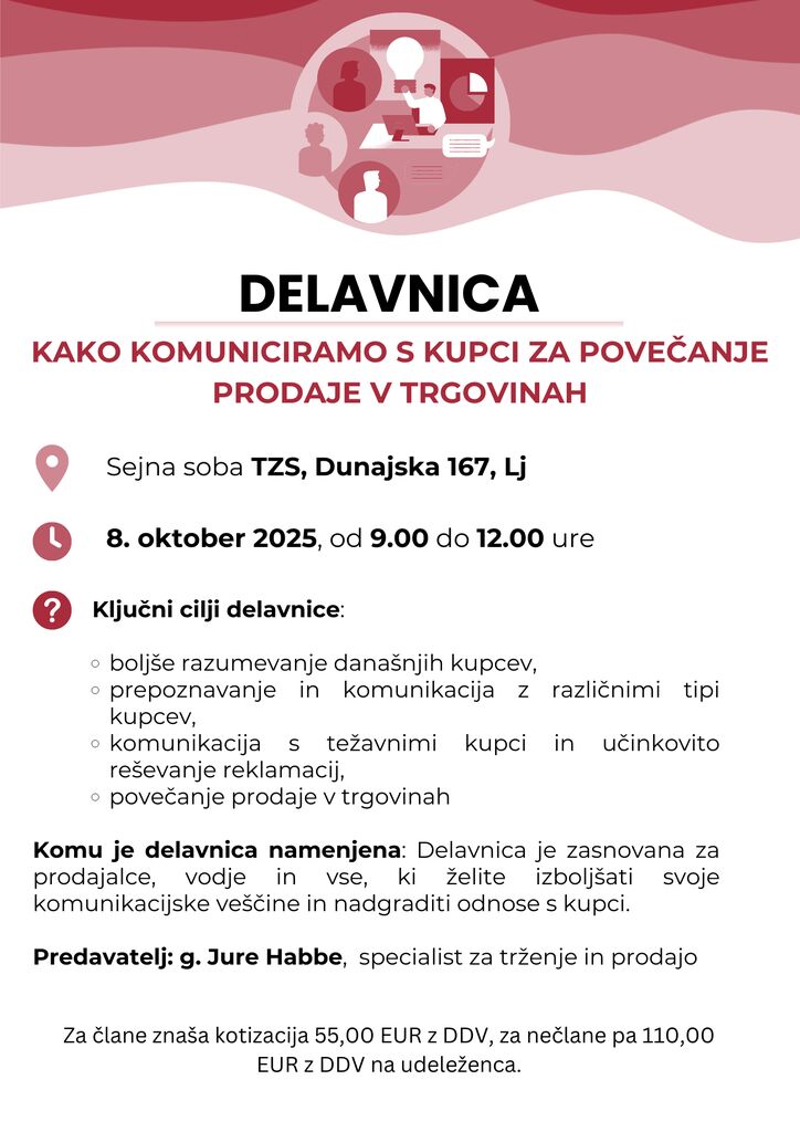 Vljudno vabljeni, da se nam v sredo, 8. oktobra 2025 med 9.00 in 12.00 uro, v sejni sobi TZS pridružite na delavnici: