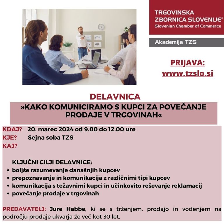 Vljudno vabljeni, da se nam v sredo, 20. marca 2024 med 9.00 in 12.00 uro, v sejni sobi TZS pridružite na delavnici: