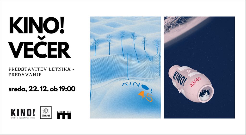 Društvo za širjenje filmske kulture KINO!, Pekarna Magdalenske mreže in Galerija K18 vabijo na večer revije KINO!. Predstavitvi delovanja Društva za širjenje filmske kulture KINO!, njegove revijalne in knjižne produkcije ter izobraževalnega programa Ostrenje pogleda bo sledila predstavitev letošnjega letnika revije KINO! (KINO! 43/44 in KINO! 45).