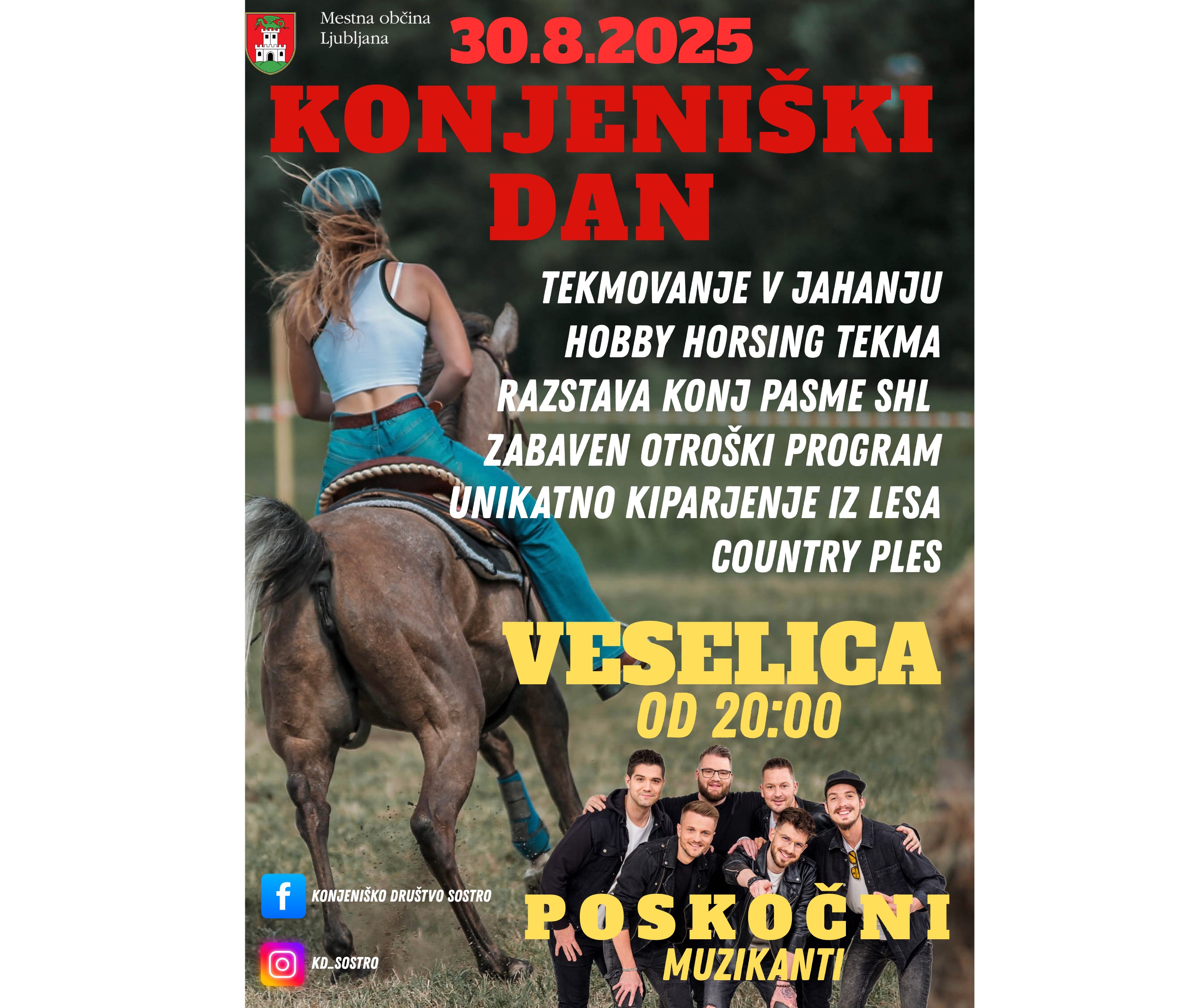 Konjeniško društvo Sostro letos organizira že 24. tradicionalni dogodek Konjeniški dan v Podmolniku pri Ljubljani, v Četrtni skupnosti Sostro. Namnjen je širši javnosti in vsem generacijam.