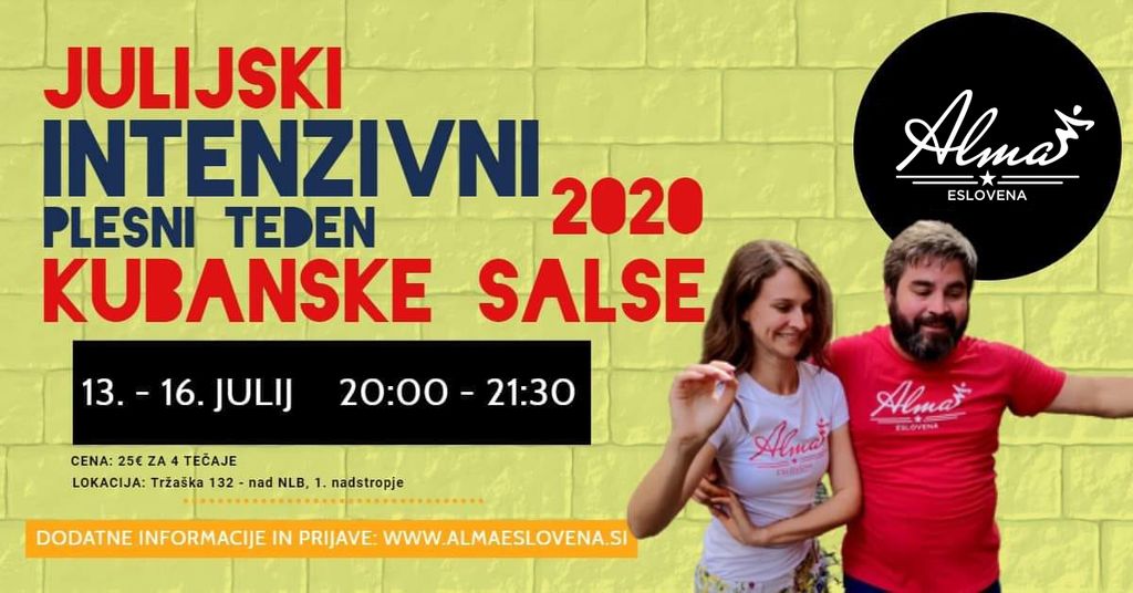 Vabljeni vsi ljubitelji kubanske salse na poletni plesni tečaj, kjer bomo v prijetnem družinskem okolju poglobili vaše plesno znanje, se ob tem zabavali in prebudili plesalca/ko v vas.