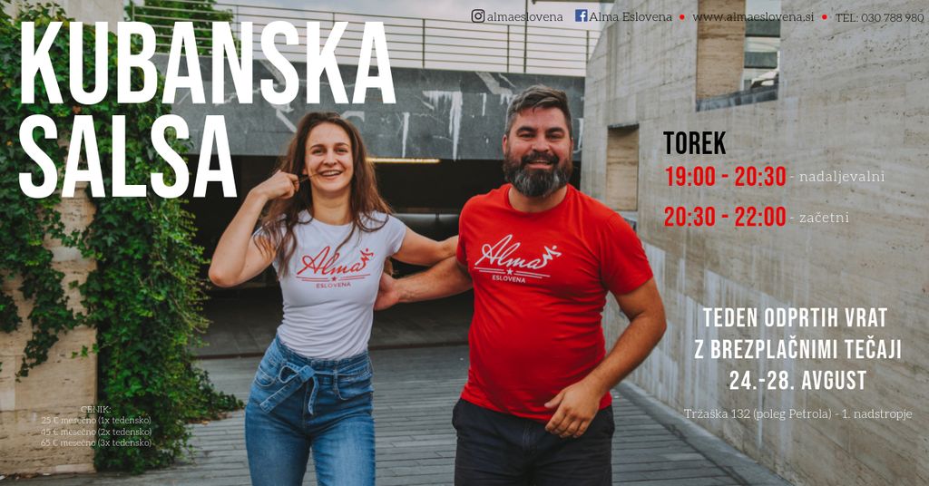 Vabljeni na nadaljevalni tečaj kubanske salse pri plesnem društvu Alma Eslovena.