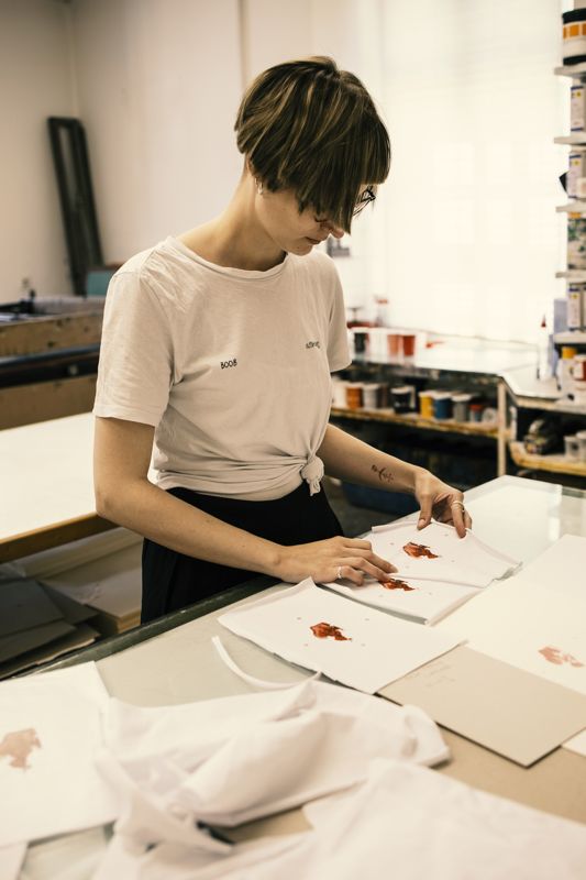 V delu Marodiranje so pletenje nadomestili sitotisk na blago, krojenje in šivanje. Projekt sestavljajo preproste bele majice z odtisom umetničinega menstrualnega madeža. Sporočilnost je neposredna, dekodirana, razkrita – intimni akt menstruiranja prehaja z odtisom menstrualne krvi na ukrojenih majicah v javni prostor in diskurz.