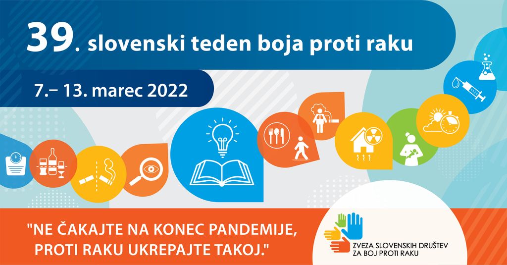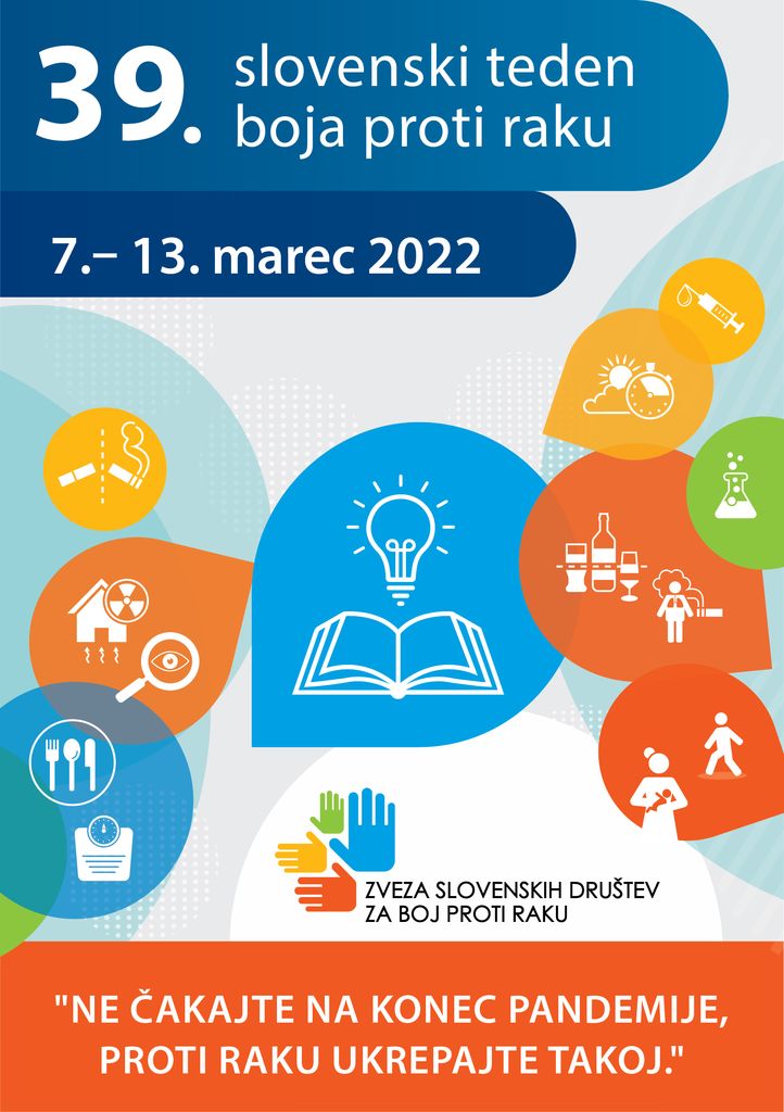 Zveza slovenskih društev za boj proti raku v sodelovanju z Onkološkim inštitutom Ljubljana organizira 39. teden boja proti raku, ki bo potekal od 7. do 13. marca 2022 z geslom:
