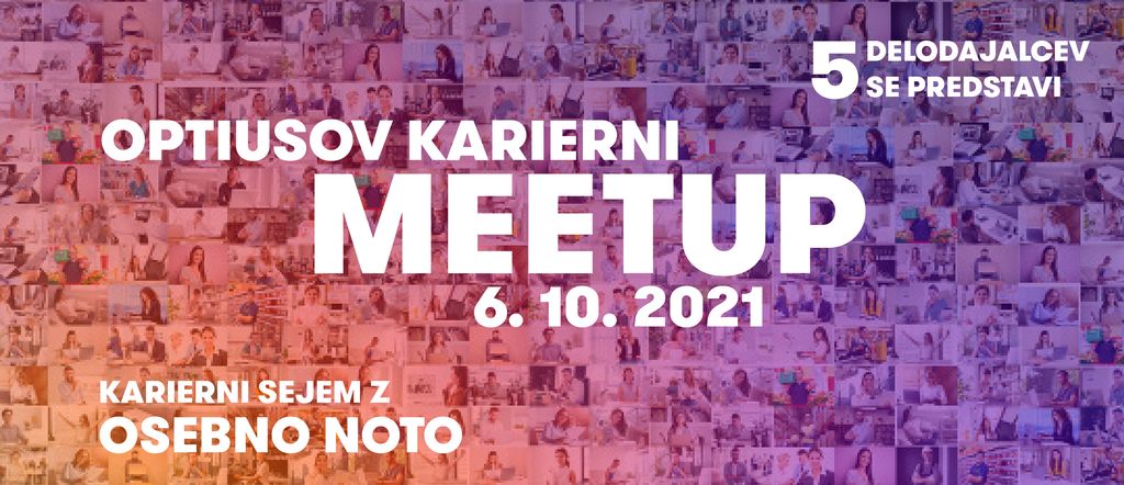 Optius Karierni MEETUP je preprosta, pregledna in učinkovita oblika povezovanja ljudi; to je med zaposlovalci in tistimi, ki si želijo novih kariernih izzivov; preko ZOOM aplikacije ker je hitro dostopna in enostavna za uporabo. Dogodka se boste tako lahko udeležili iz pisarne ali udobja svojega doma.