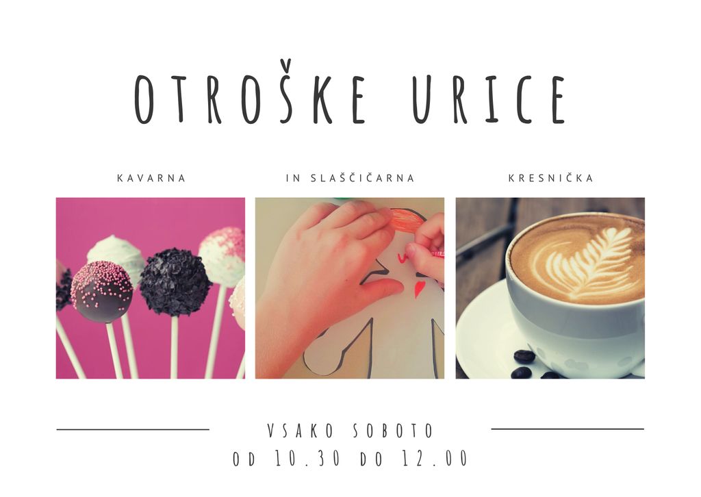 Otroci in starši, pridružite se nam vsako soboto v kavarni in slaščičarni Kresnička na Otroških uricah. Medtem, ko boste vi, dragi starši, v miru spili kavico, bodo vaši otroci ustvarjalno preživeli sobotno dopoldne.