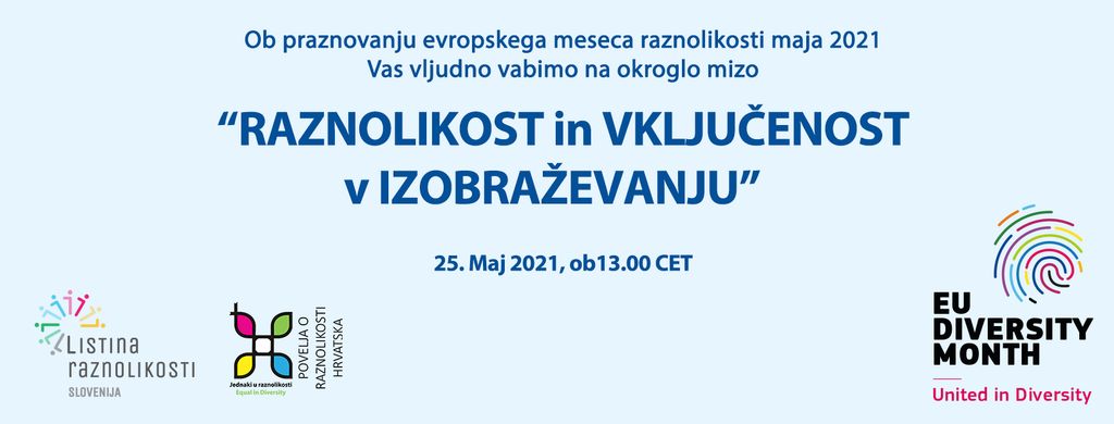 Ob praznovanju evropskega meseca raznolikosti v maju 2021, vas vljudno vabimo na virtualni dogodek – okroglo mizo »Raznolikost in vključenost v izobraževanju«