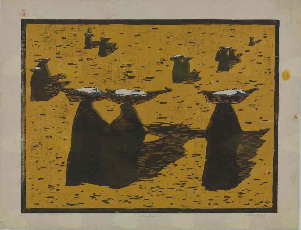 Riko Debenjak: Kraševke, barvni lesorez.