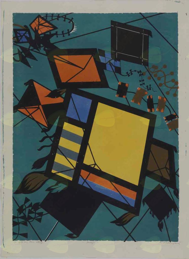 Riko Debenjak: Zmaji, 1956, barvna litografija.