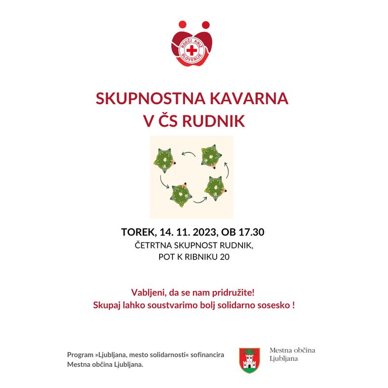 križa Rudnik vabijo na dogodek: SKUPNOSTNA KAVARNA V ČS RUDNIK, in