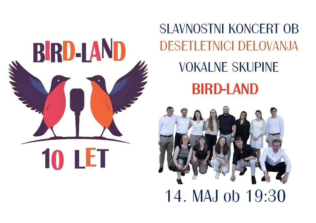 10. obletnico delovanja bo Vokalna skupine Bird-land praznovala s koncertom v Slovenski filharmoniji. Vabljeni vsi, ki vas zanima jazz glasba zraven pa še zborovska.