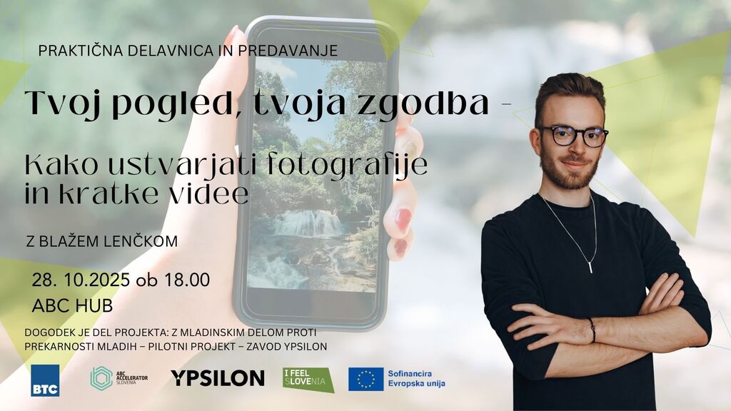 Zavod Ypsilon vabi na praktično delavnico fotografiranja in snemanja za družbena omrežja, kjer boste od profesionalnega fotografa Blaža Lenčka izvedeli, kako ustvariti vizualne vsebine, ki pritegnejo pozornost in izstopajo med poplavo objav.