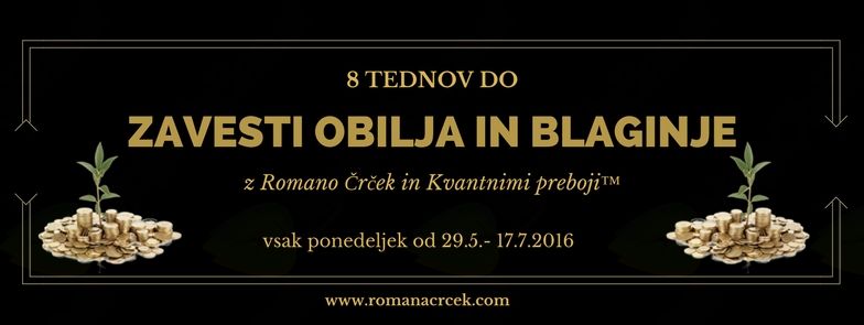 "Draga Romana, tudi jaz lahko rečem,da se mi življenje po štirih kvantnih prebojih lepo spreminja. V treh tednih sem bila na kvantnem preboju za odnose, za kariero in uspeh,za zdravje in dobro počutje in na manifestaciji. Lahko rečem, da se počutim bolj lahkotno,bolj radostno,bolj samozavestno. Čutim spremembe tudi v telesu samem,ker se kar lepo očiščuje vsega starega. Danes pa sem kar zajokala od hvaležnosti,ker sem dobila pri plači povrnjeno vse in še več,kar sem investirala vase s kvantnimi preboji. Sprašujem se, kaj lepega me še čaka zdaj in kako je lahko še boljše kot to? Hvala tebi,ker SI ???? In hvala meni,ker sem se ODLOČILA ZA SPREMEMBO ????" S hvaležnostjo od B.H.