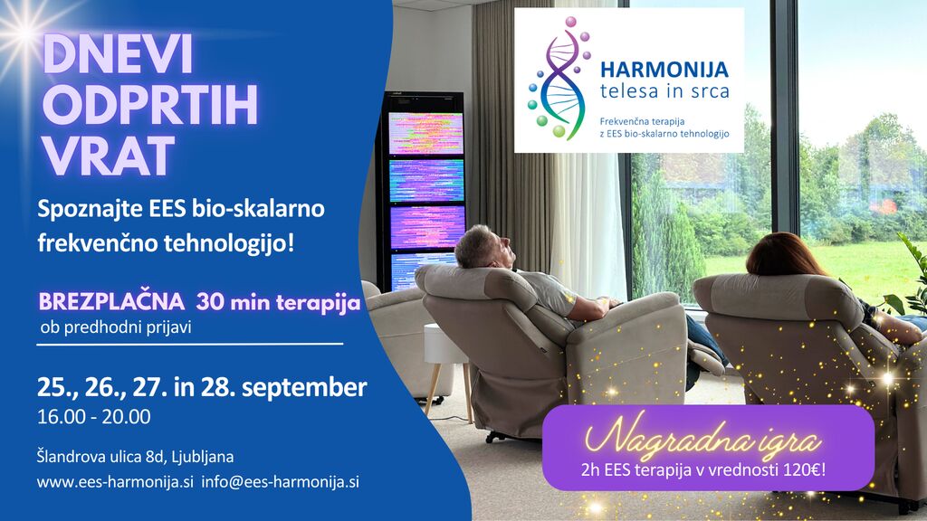 Prijavite se na 30-minutno brezplačno terapijo ob dnevu odprtih vrat – prijave sprejemamo na info@ees-harmonija.si (do zapolnitve mest).