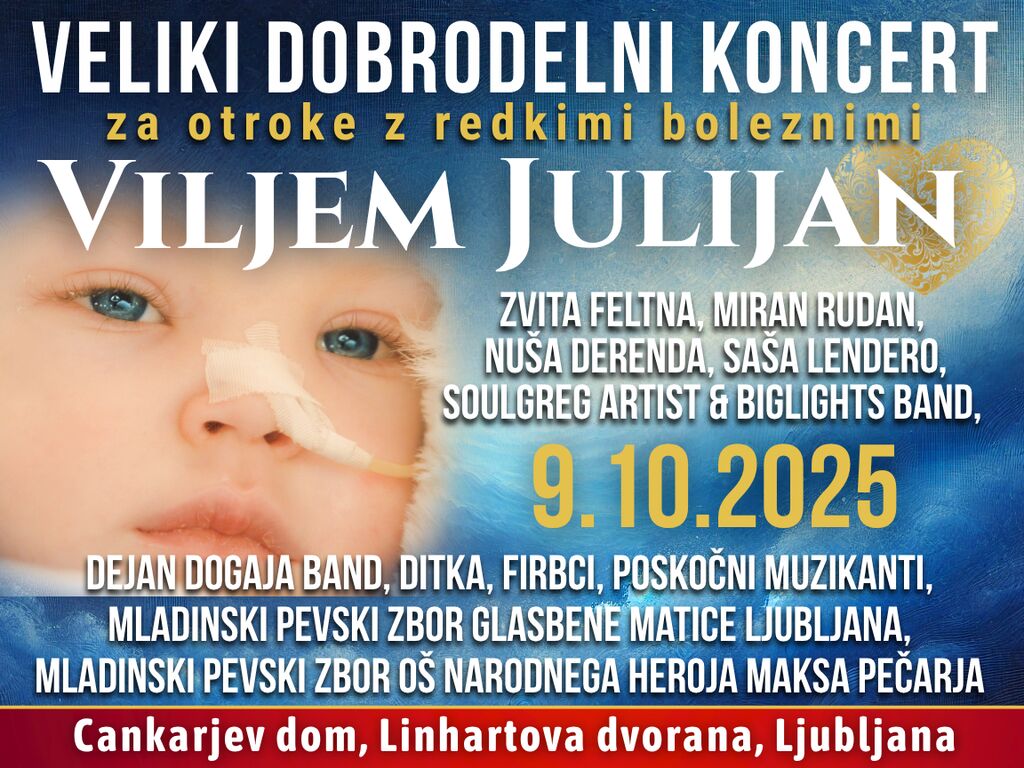 Vabljeni na nepozabni tradicionalni veliki dobrodelni koncert VILJEM JULIJAN 2025, ki bo v četrtek, 9. 10. 2025 ob 18. uri. Koncert je glas otrok z redkimi boleznimi, je simbol ljubezni, podpore in neprecenljive vrednosti življenja vsakega otroka.