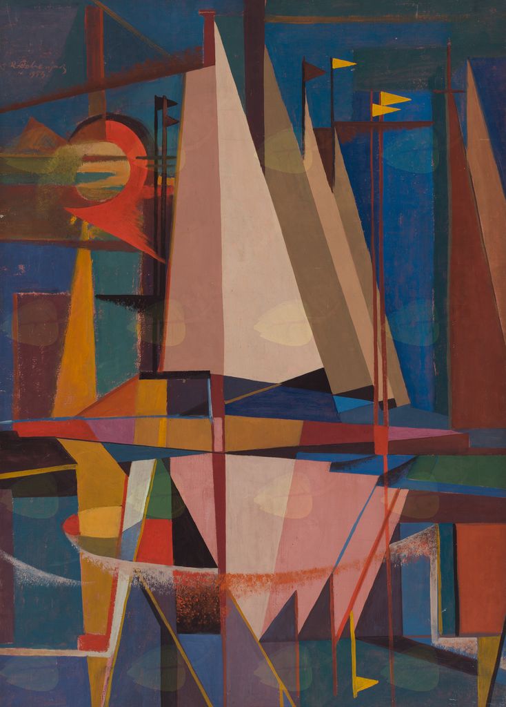 Na sliki/Riko Debenjak: Pred startom jadrnic, 1953, olje na platno. Foto: Jaka Babnik. Arhiv MGLC.