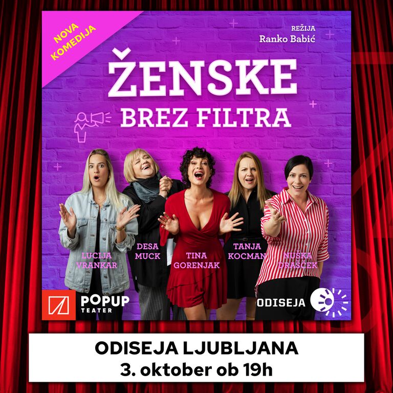 ŽENSKE BREZ FILTRA je komedija, kjer 5 žensk brez zadržkov govori o temah, ki so marsikomu blizu, a si jih redko kdo upa naglas izreči.
