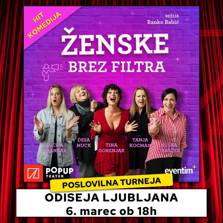 ŽENSKE BREZ FILTRA je komedija, kjer 5 žensk brez zadržkov govori o temah, ki so marsikomu blizu, a si jih redko kdo upa naglas izreči.