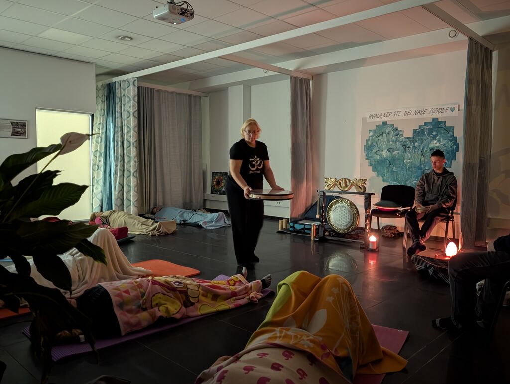 Zvočna kopel z vodeno meditacijo, ob spremljavi gonga, flavte, kristalne harfe in še mnogo drugih inštrumentov.