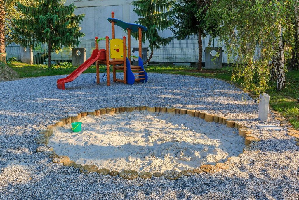 Gre za sosednji zgradbi, ki imata skupno ograjeno dvorišče in igrišče.