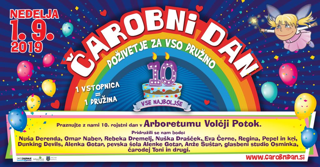 Bodite torej del čarobnih trenutkov, ki vas čakajo v oazi zelenih vrtov in pisanega cvetja ter skupaj s Čarobnim dnem upihnite že 10. jubilejno svečko na torti.
