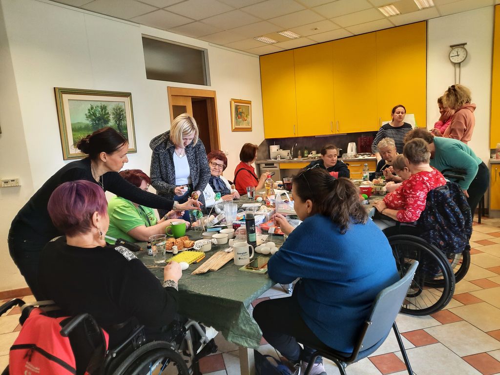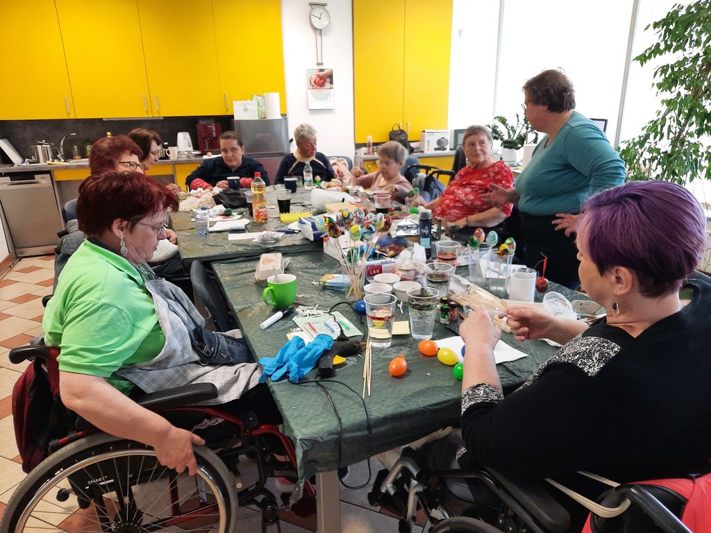 Na Društvu paraplegikov ljubljanske pokrajine smo 16. aprila začeli s pripravo na velikonočne praznike. Imeli smo delavnico barvanja pirhov. Naše članice so se v velikem številu ob 11. uri zbrale v društvenih prostorih. S seboj so prinesle jajca in različne pripomočke.